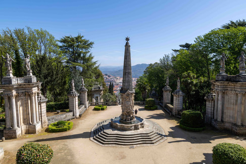 Zunächst fahren wir zur Kleinstadt Lamego, die bekannt ist für die Wallfahrtskirche Santuário de Nossa Senhora dos Remédios, die man vom Stadtzentrum über mehr als 600 Stufen erreicht. Unser Plan direkt im Stadtzentrum am Schwimmbad zu parken, funktioniert leider nicht, weil heute leider Markttag ist und damit der große Parkplatz belegt ist. Wir fahren einen Umweg und parken direkt oben bei der Kirche und laufen zunächst die Stufen hinab in die Stadt. Der Markt überzeugt uns nicht besonders und außer der Kirche können wir der Stadt auch nicht viel abgewinnen. Von daher entscheiden wir bei einem Kaffee mit Gebäck, dass wir die 600 Stufen in Angriff nehmen, auf Castel und Kathedrale verzichten und weiter Richtung Pinhao fahren.